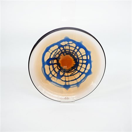 Piatto in vetro con decoro a rete in pasta di vetro blu (d cm 25) (difetti)