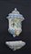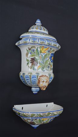 Acquamanile in terraglia smaltata decorata a mascherone e motivi vegetali...