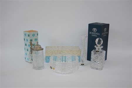 Lotto composto da quattro oggetti in cristallo di diverso uso, in custodia...