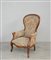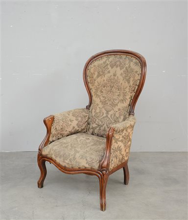 Poltrona in noce con schienale sagomato, braccioli, montanti e piedi mossi. Fine sec. XIX (difetti)