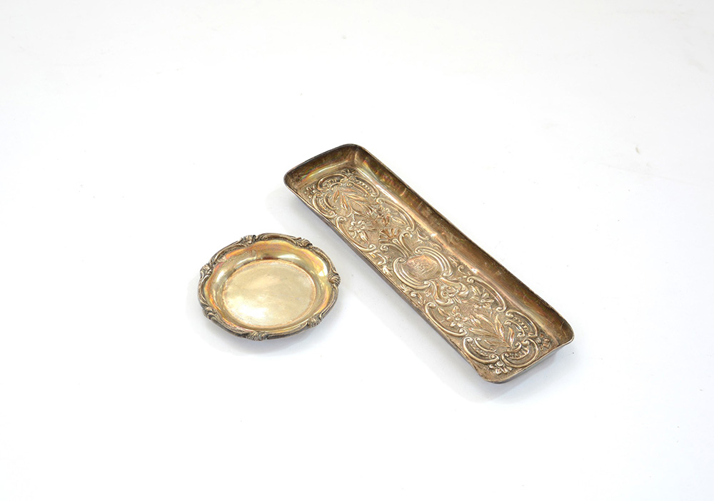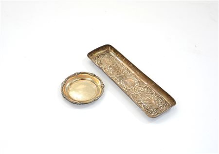 Una ciotola ed un posacenere in argento sbalzato (gr 120 ca.) (difetti)