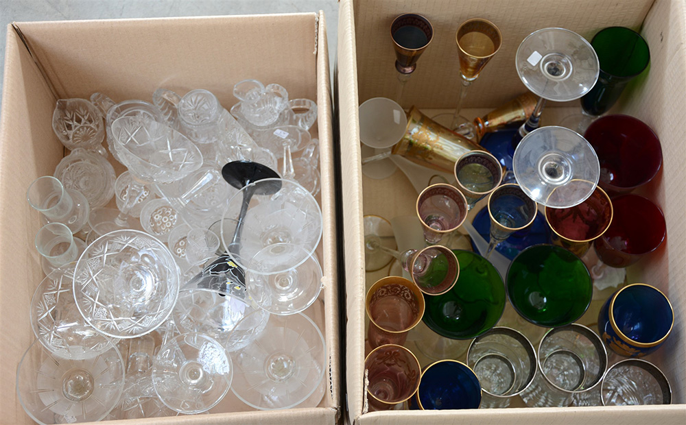 Numerosi bicchieri di fatture e decori diversi (difetti)
