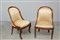 Coppia di sedie da balia in noce con montanti decorati a delfini. Sec. XIX...