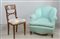 Lotto composto da una sedia del sec. XIX e una poltrona rivestita in tessuto azzurro (difetti)