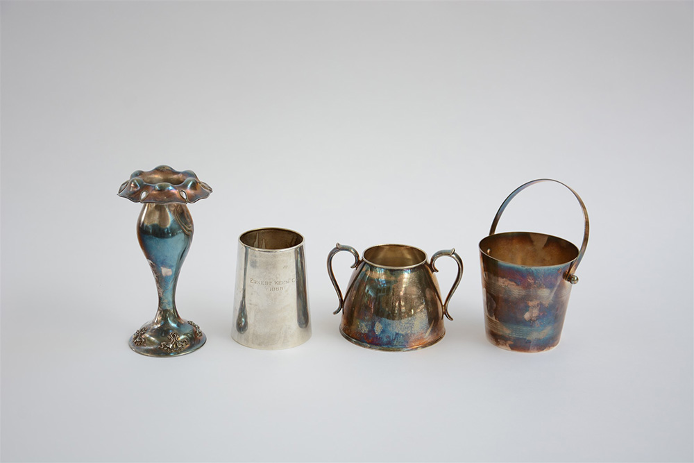 Lotto di quattro pezzi in metallo argentato