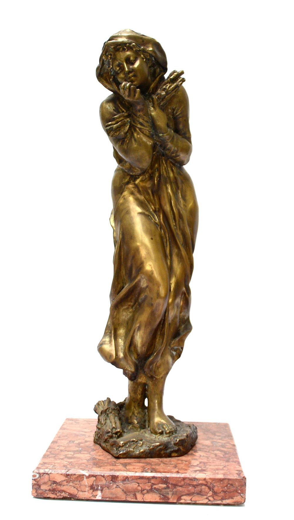 Ignoto "Spigolatrice" scultura in bronzo (h. cm 64) Poggiante su base in marmo rosa