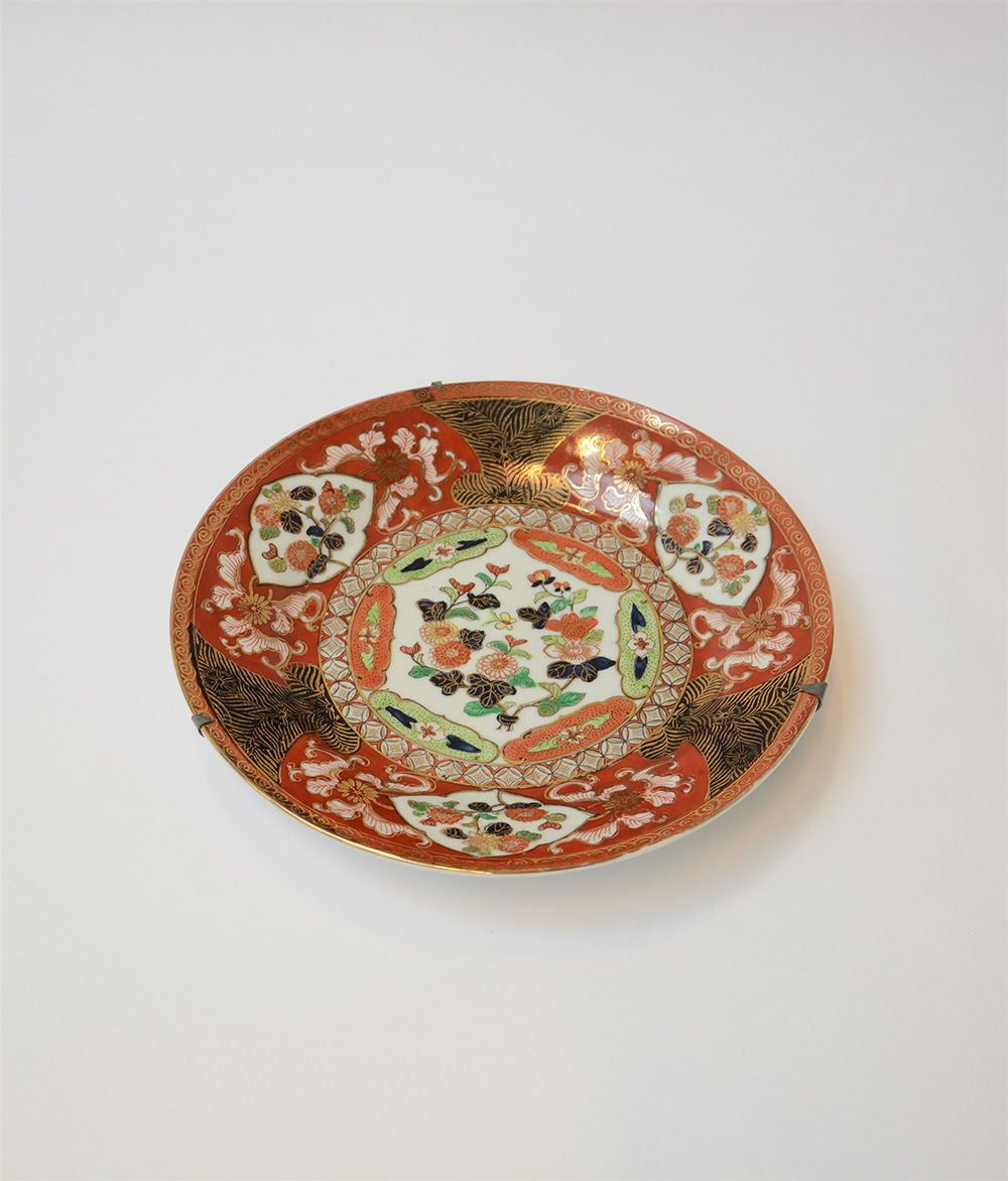 Piatto in porcellana decorato con motivi floreali nei toni del rosso e...