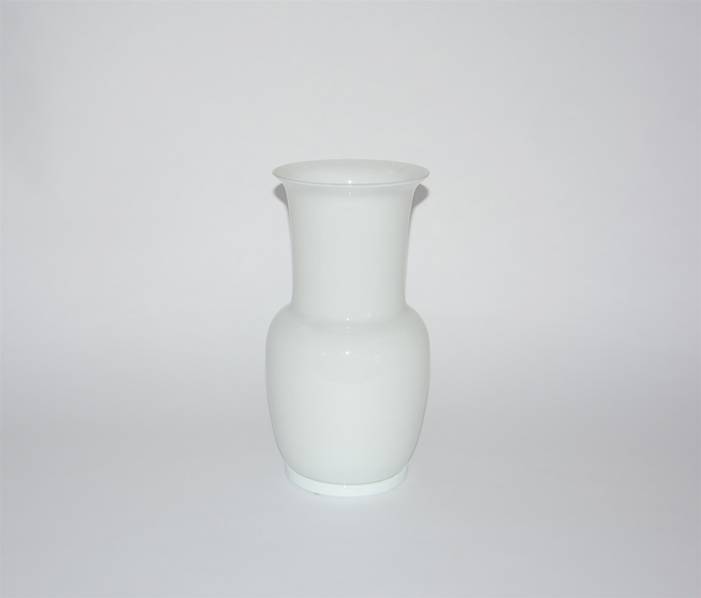 Manifattura di Murano. Vaso in vetro incamiciato lattimo con base applicata (h cm 35)