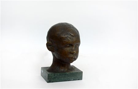 Ignoto sec. XX "Volto di bambino" scultura in bronzo (h cm 22) montato su base in marmo (difetti)