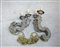 Coppia di appliques a due luci in rame sbalzato e dorato sec XIX (cm h 41)...
