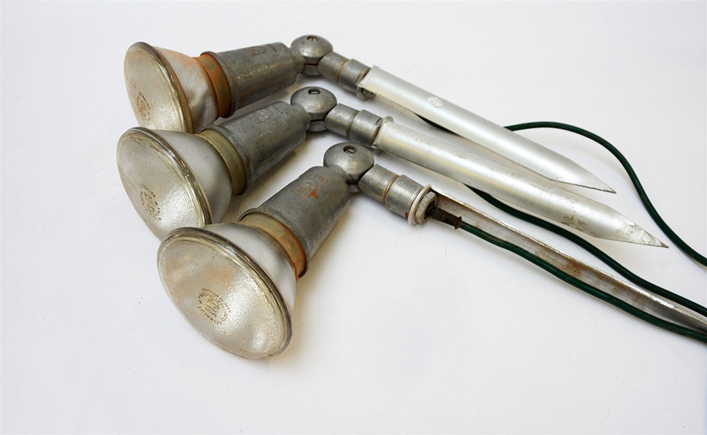 Gruppo di tre faretti da esterno in alluminio (difetti)