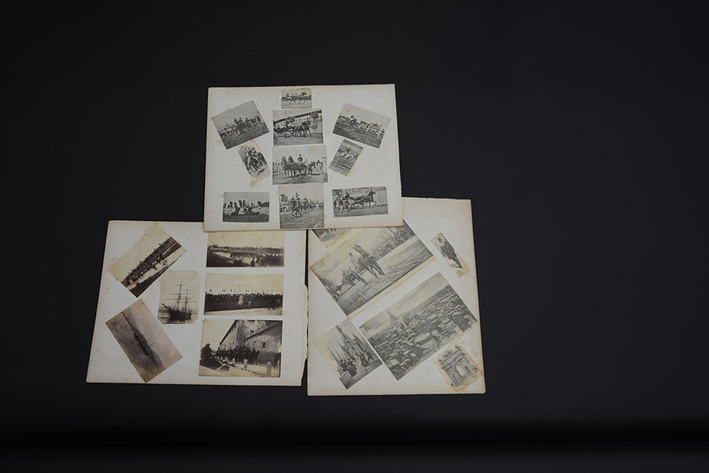 Album parziale con numerose fotografie di manovre del reggimento di cavallerie del Regno d'Italia, inizio sec. XX (difetti)