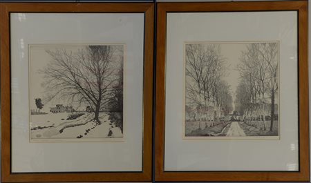 Federica Galli "Cascina Roverbella" e "Cascina l'innominata" Coppia di acqueforti (cm 50x48) Esemplare 39/90 e esemplare 65/90. Firmate in basso a destra, al retro etichetta della Galleria "Compagnia del Disegno" Milano, in cornice
