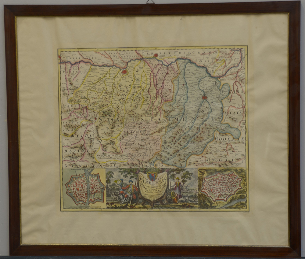 Stampa a colori raffigurante lo stato di Parma (cm 65x76) In cornice