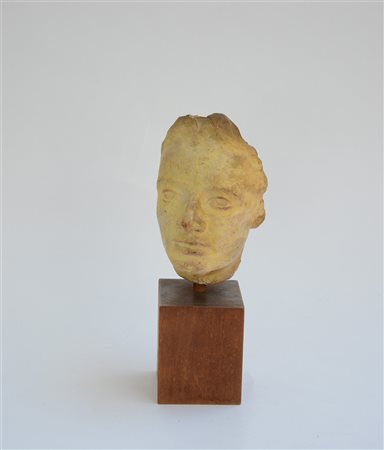 Lilian Tadini "Volto" scultura in terracotta (h. cm 22) poggiante su base in legno (difetti)