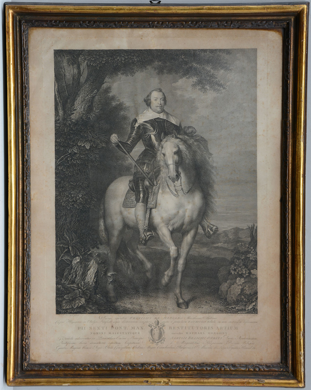 Raffaello Morghen "Francesco de Moncada" da Van Dick, incisione fine sec. XVIII (cm 70x50) In cornice dorata