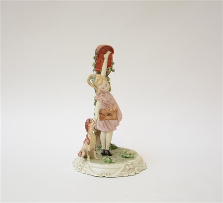 Manifattura italiana, Tiziano Galli. "La letterina" gruppo plastico in ceramica policroma (h cm 29)(lievi difetti)