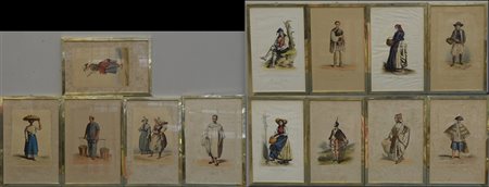 Gruppo di tredici stampe a colori della serie "Galleria Reale del Costume"...