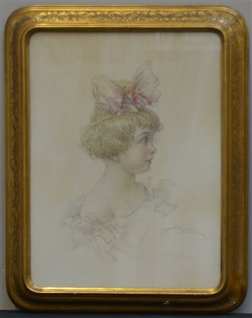 Firma indecifrata "bimba" stampa a colori (cm 43x32) firmata, in cornice