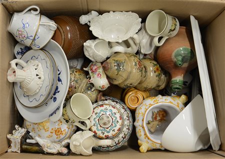 Cartone contenente numerosi oggetti in ceramica e porcellana (difetti)