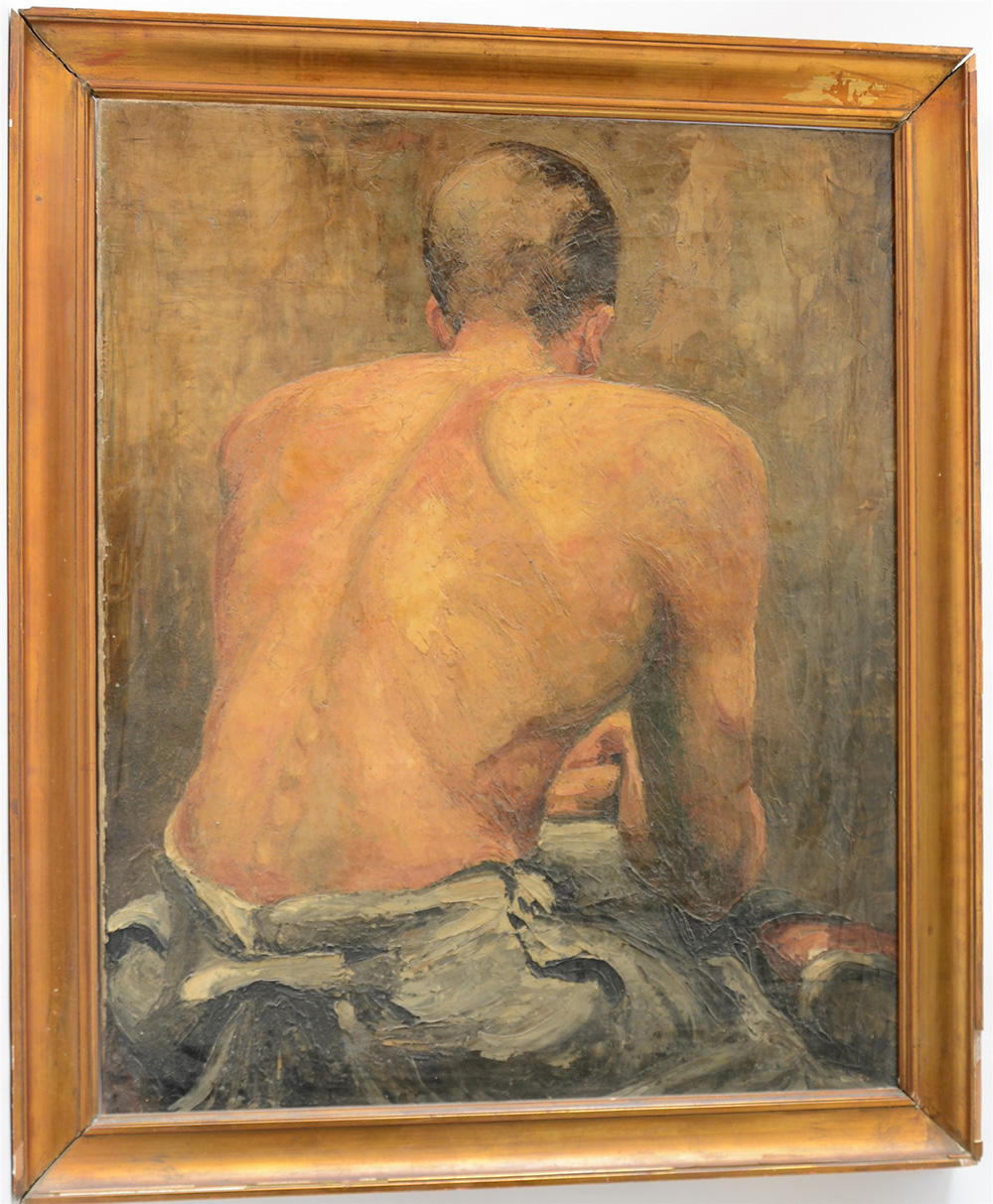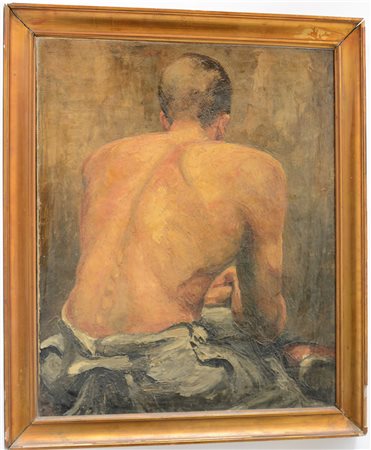Ignoto sec.XX "Nudo maschile di schiena" olio su tela (cm 80x65) In cornice