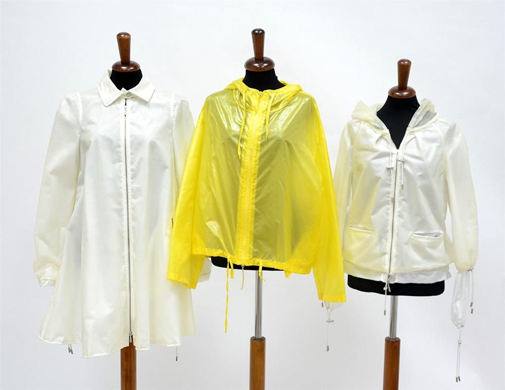 KRIZIA Lotto di tre capispalla in tessuto tecnico plastificato, antipioggia di colori e fogge diverse (tg. 42) -EN KRIZIA Lot comprising three coats in waterproof plastified textile of different colours and styles (size 42)