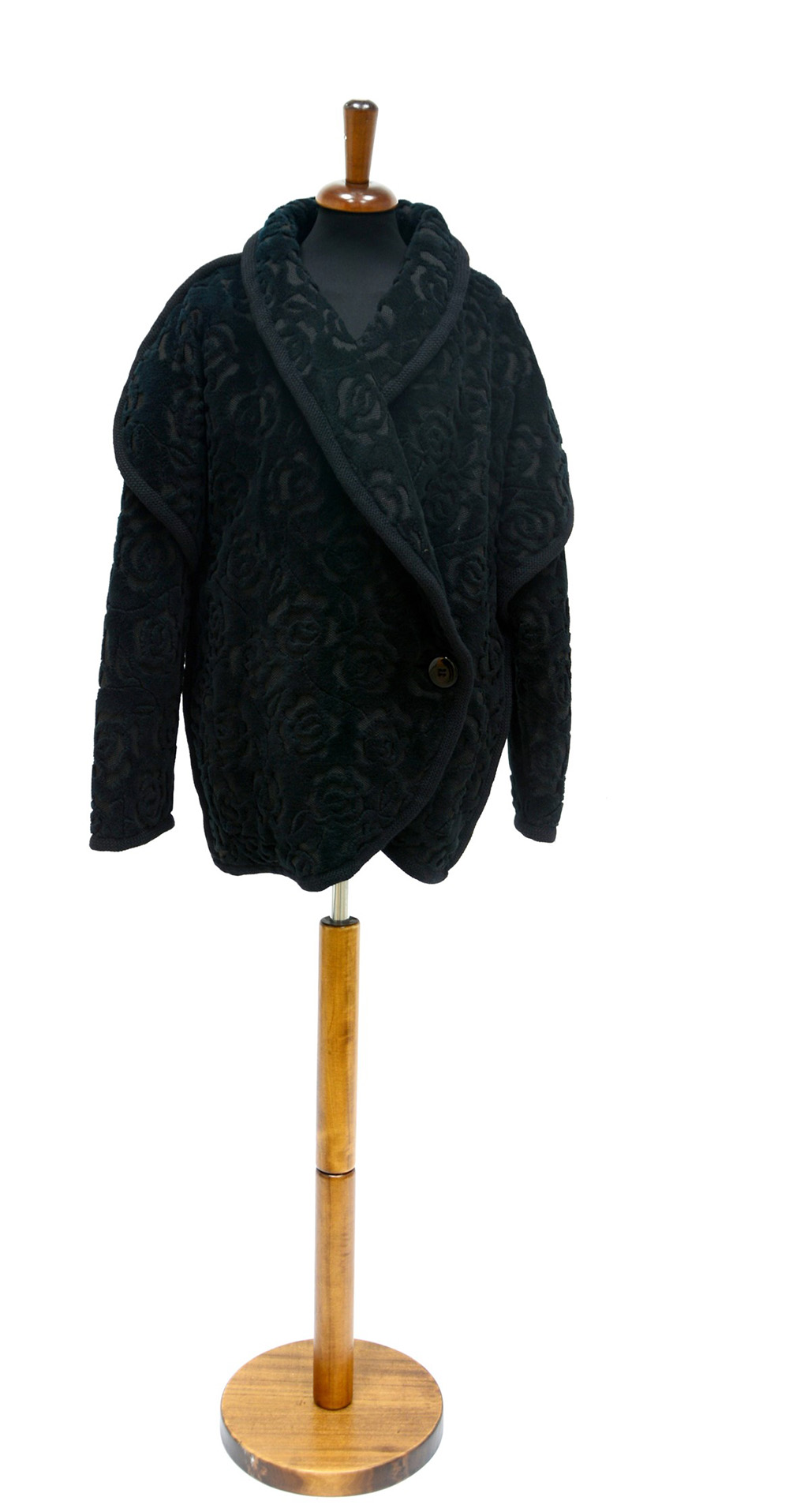 KRIZIA POI Giaccone in ecopelliccia nera con rose in rilievo (tg 44) -EN KRIZIA POI Black coat with relief faux-fur rose pattern (size 44)