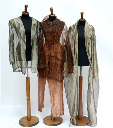 CAPI CAMPIONE Lotto di due capispalla e un completo in garza di seta e misto...