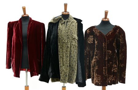 KRIZIA Lotto di quattro capispalla in tessuto di velluto di colori e fogge differenti (tg 42/44) -EN KRIZIA Lot comprising four velvet coats in different colours and styles (sizes 42/44)