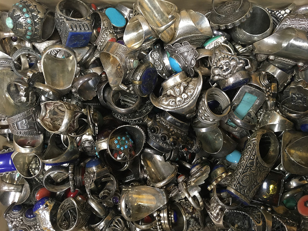 Lotto in scatolone di anelli di manifattura africana, indiana e orientale con...