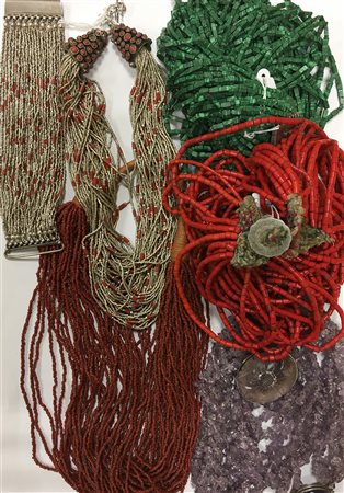 Lotto di cinque collane multifili di differenti materiali e colori una con bracciale pendant (difetti)