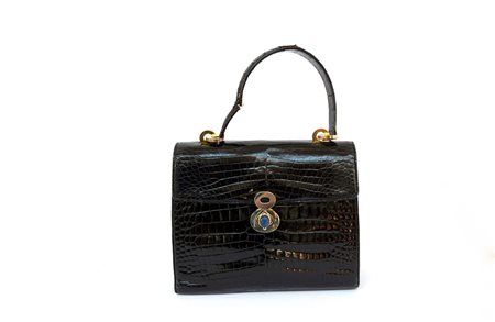 GUCCI, FIRENZE Borsa a mano in coccodrillo nero con dettagli in metallo...