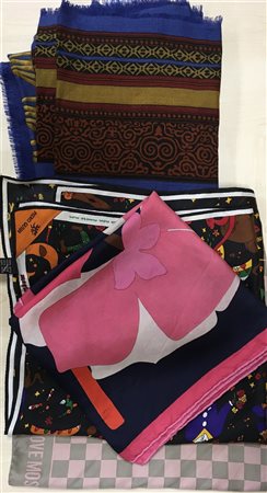 CHRISTIAN DIor, VALENTINO, MOSCHINO, P. GUIDI Lotto composto da 4 foulards di cui un grandfoulard, di colori, misure e materiali diversi (difetti)