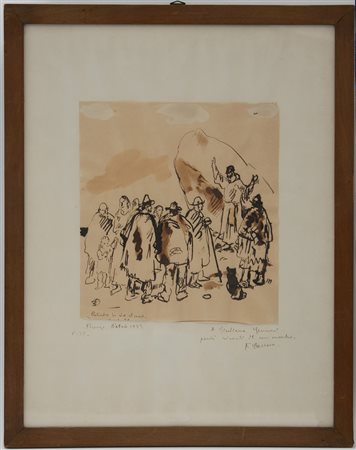 Felice Carena "Predicatore in riva al mare" china su carta (cm 23x21) Firmata...