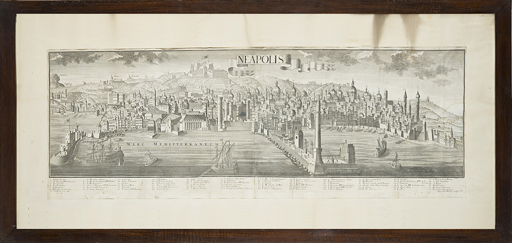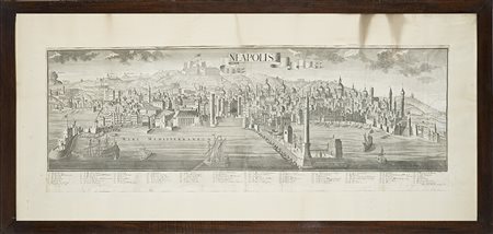 Friedrich Bernhard Werner (1690 - 1778) Acquaforte raffigurante la città di Napoli vista dal mare (cm 38x100) In cornice (difetti) -EN An etching representing the city of Naples from the sea (cm 38x100) Framed (defects)