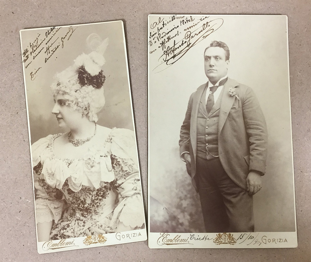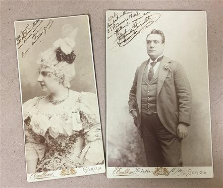 Due ritratti fotografici ritraenti Alfonso Garulli (tenore) e la figlia Tina Bendazzi Garulli, con relativi autografi (?).