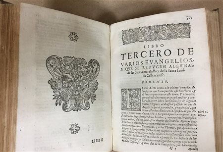 MANRIQUE, Àngel. Sermones varios del maestro fr. Angel Manrique. Barcellona: Margarit Jerónimo, 1623. Vol. in 4to, con marca tipografica al frontespizio, iniziali e fregi xilografati; nota di possesso al frontespizio (alcuni fogli bruniti, macchie di umidità verso la fine del volume). Legatura coeva in piena pergamena, con titolo manoscritto al dorso (lievi difetti).
