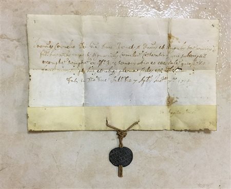 Lotto composto da: - atto emanato dal Senato bolognese il 14 maggio del 1774 riguardo allo stato di libertà. Documento su pergamena (382 x 585mm); scrittura calligrafica settecentesca; sigillo originale in ceralacca. - documento del Doge di Venezia, Giovanni II Corner datato 7 febbraio 1714; con sigillo plumbeo originale (difetti).