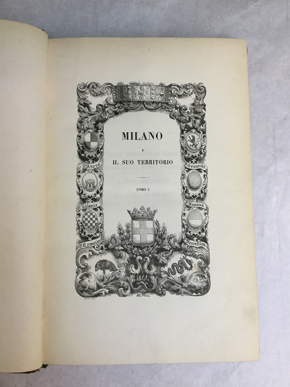 Milano e il suo territorio. Milano: Luigi di Giacomo Pirola, 1844. 2 vol. in 4to. Legatura in piena pelle decorata a secco, taglio azzurro (lievi difetti al dorso).