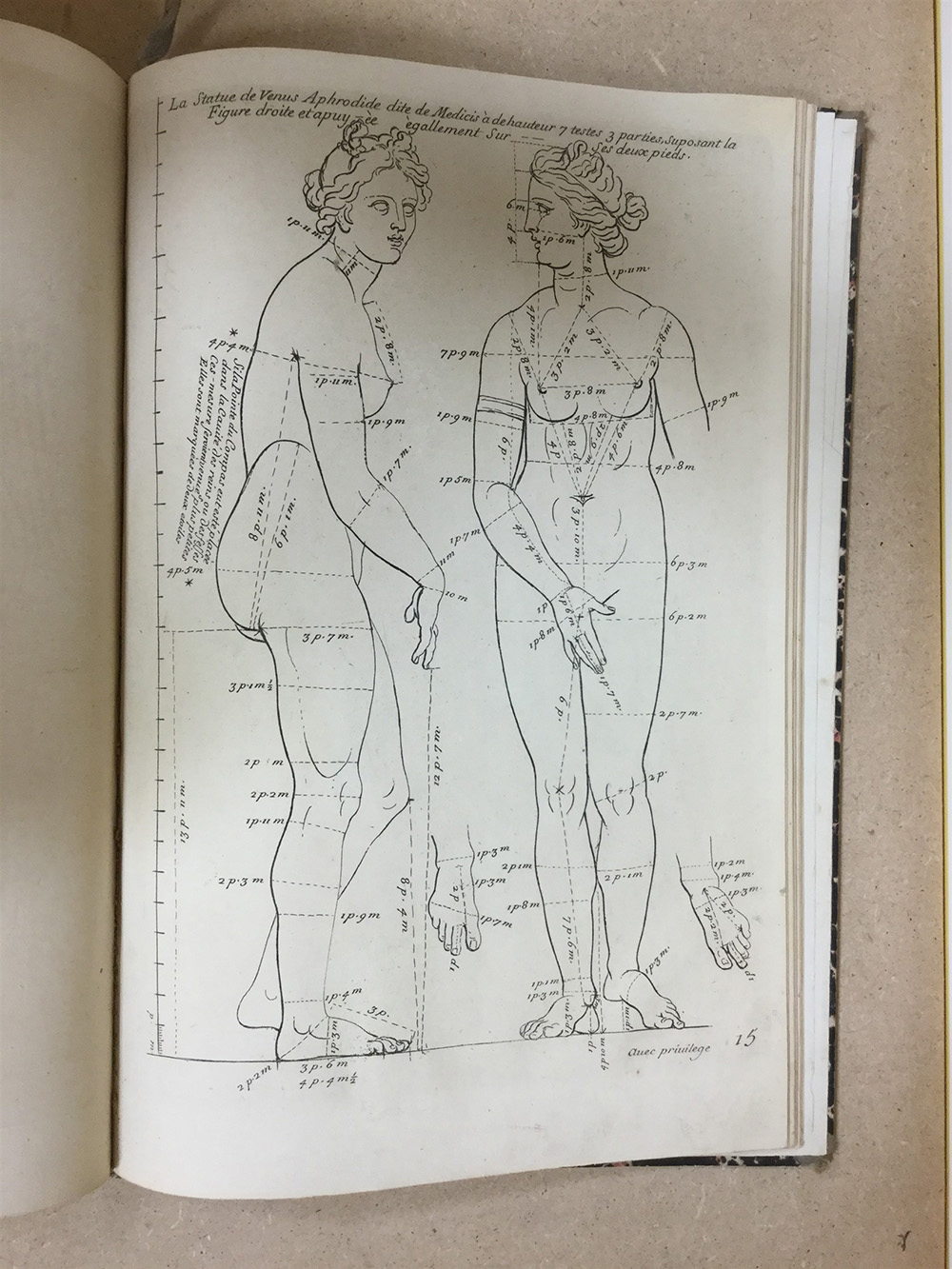 AUDRAN, Gérard. Les Proportions du Corps Humain. Parigi: Joubert, 1801. Volume in folio, con numerose tavole raffiguranti il corpo umano (lievi bruniture; macchia sul frontespizio). Legatura in mezza pelle con piatti marmorizzati (lievi difetti).