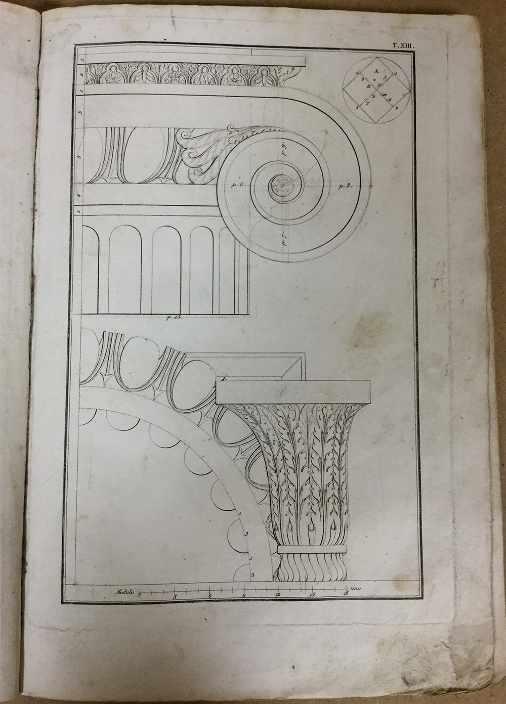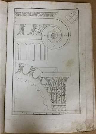 BAROZZI, Jacopo. Gli ordini di architettura civile. Milano: Pietro e Giuseppe Vallardi, 1825. Volume in 4to, con numerose tavole (lievi macchie e difetti). Legatura in mezza pelle con piatti marmorizzati, dorso scollato (legatura compromessa; frontespizio tagliato e incollato).