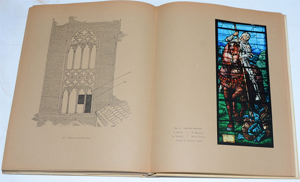 MARCHINI, Giuseppe. Le vetrate italiane. Milano: Electa Editrice, 1956. Volume 4to. Numerose illustrazioni a colori, di cui molte applicate, e tre su carta lucida effetto vetrata. Legatura editoriale.