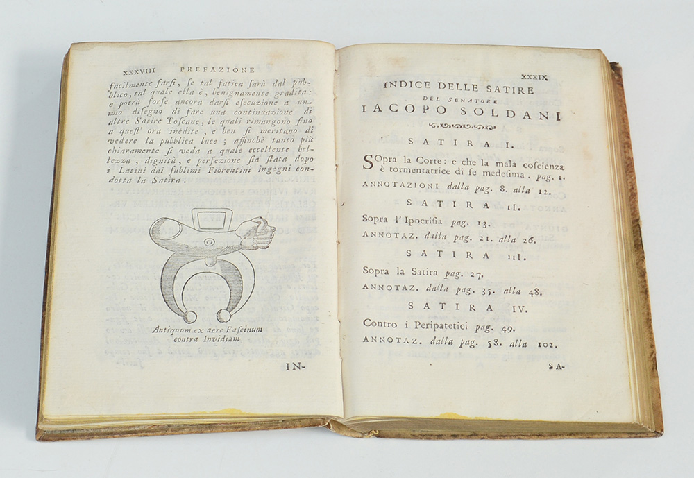 SOLDANI, Iacopo. Satire. Firenze: Gaetano Albizzini, 1751 (prima edizione)....