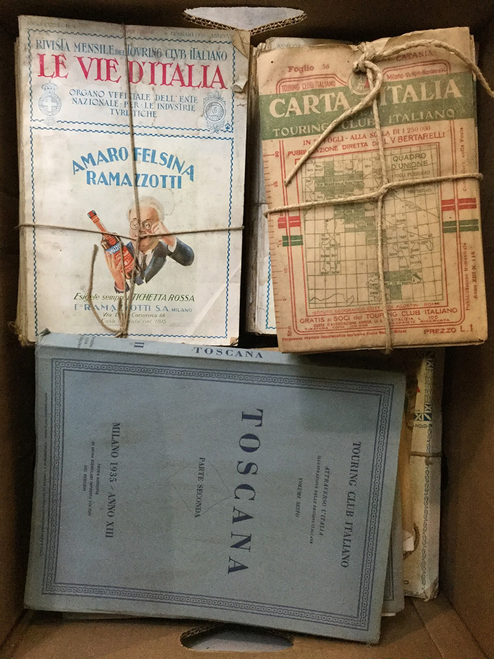 Lotto composto da numerose pubblicazioni del Touring Club Italiano, da svariati fascicoli de "Le Vie d’Italia" e "Le Vie del Mondo", guide di diversi luoghi del mondo (difetti). In cinque cartoni.