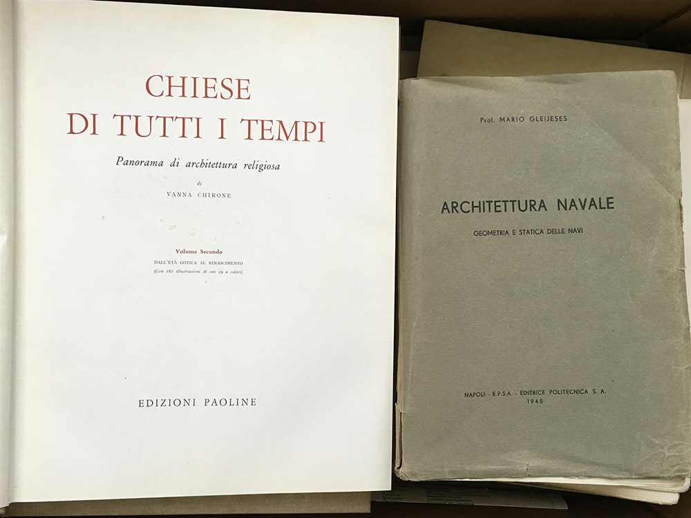 Lotto composto da numerosi volumi inerenti l'arte antica e moderna (fra cui monografie su Ingres, Giorione, Goya e Tiepolo), cataloghi di mostre, volumi di architettura (difetti). In due cartoni.