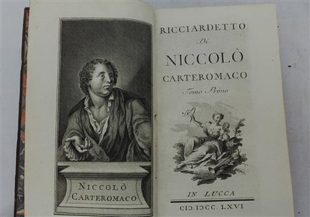 CARTEROMACO, Niccolò. Ricciardetto. Lucca: [s.e.], 1766. 2 volui in 8vo, con...