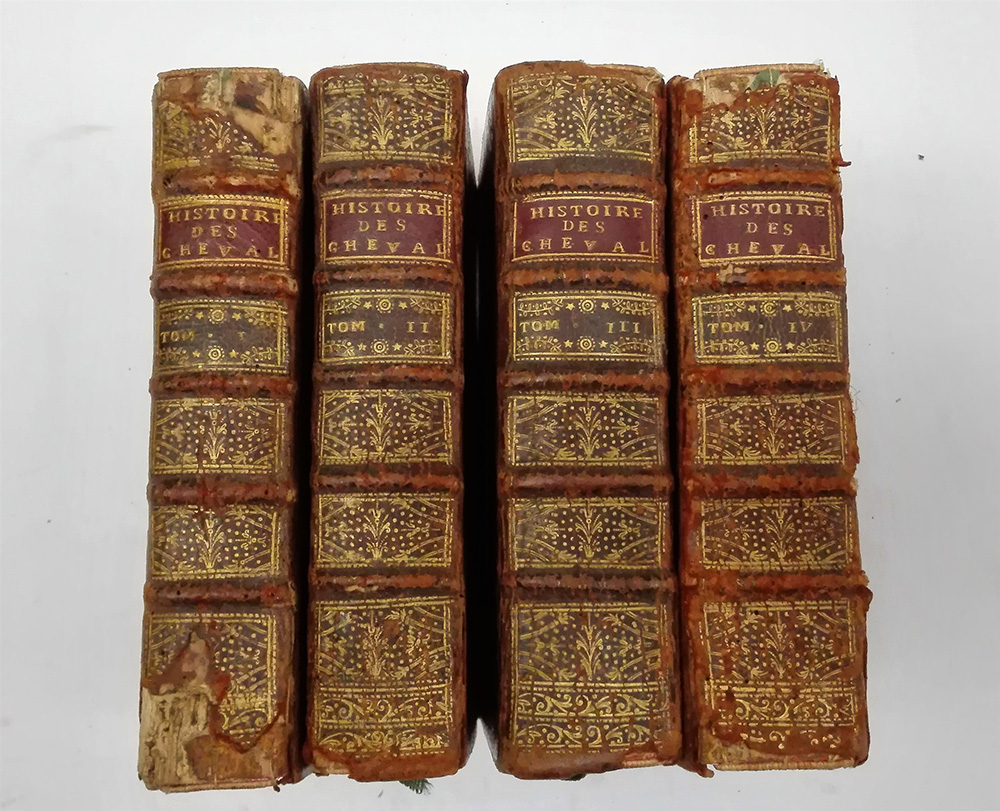 [BUONANNI, Filippo – BASNAGE, Jacques]. Histoire des Ordres Militaires ou des Chevaliers. Amsterdam: Pierre Brunel, 1721. 4 volumi in 12mo, con incisione in antiporta al I volume e incisioni fuori testo nei 4 volumi (lievi difetti). Legatura in piena pelle con titolo al dorso, taglio rosso (dorsi corrotti).