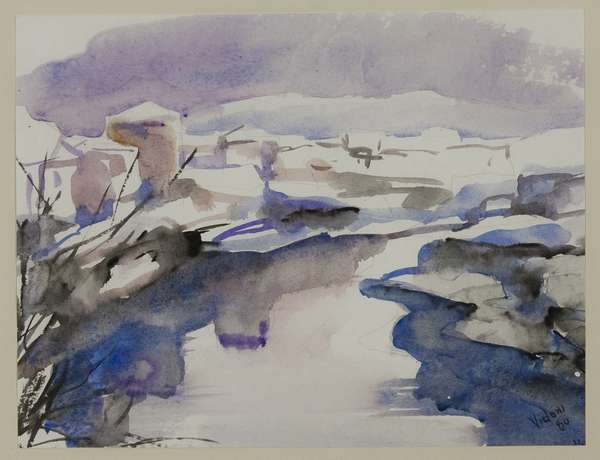 Luigi Vidoni Nevicata – 1980 acquarello su carta cm. 32x42 Firma in basso a dx