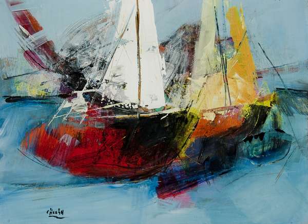 Lot 58 | Roberto Cheula Vele al vento olio su tavola cm. 54x73 Firma in basso a sx