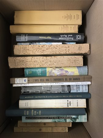 Lotto composto da opere inerenti la storia e l'economia politica di alcuni territori africani (come il Tchad e la Tripolitania) e del Vicino Oriente (Sinai e Palestina). Totale di 48 opere in tre cartoni.